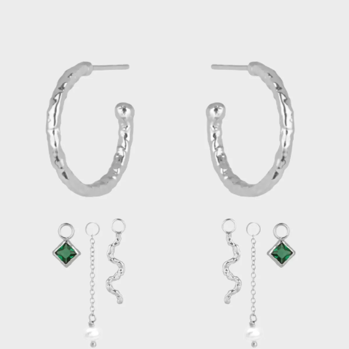 2 x Square Charm m. grøn sten